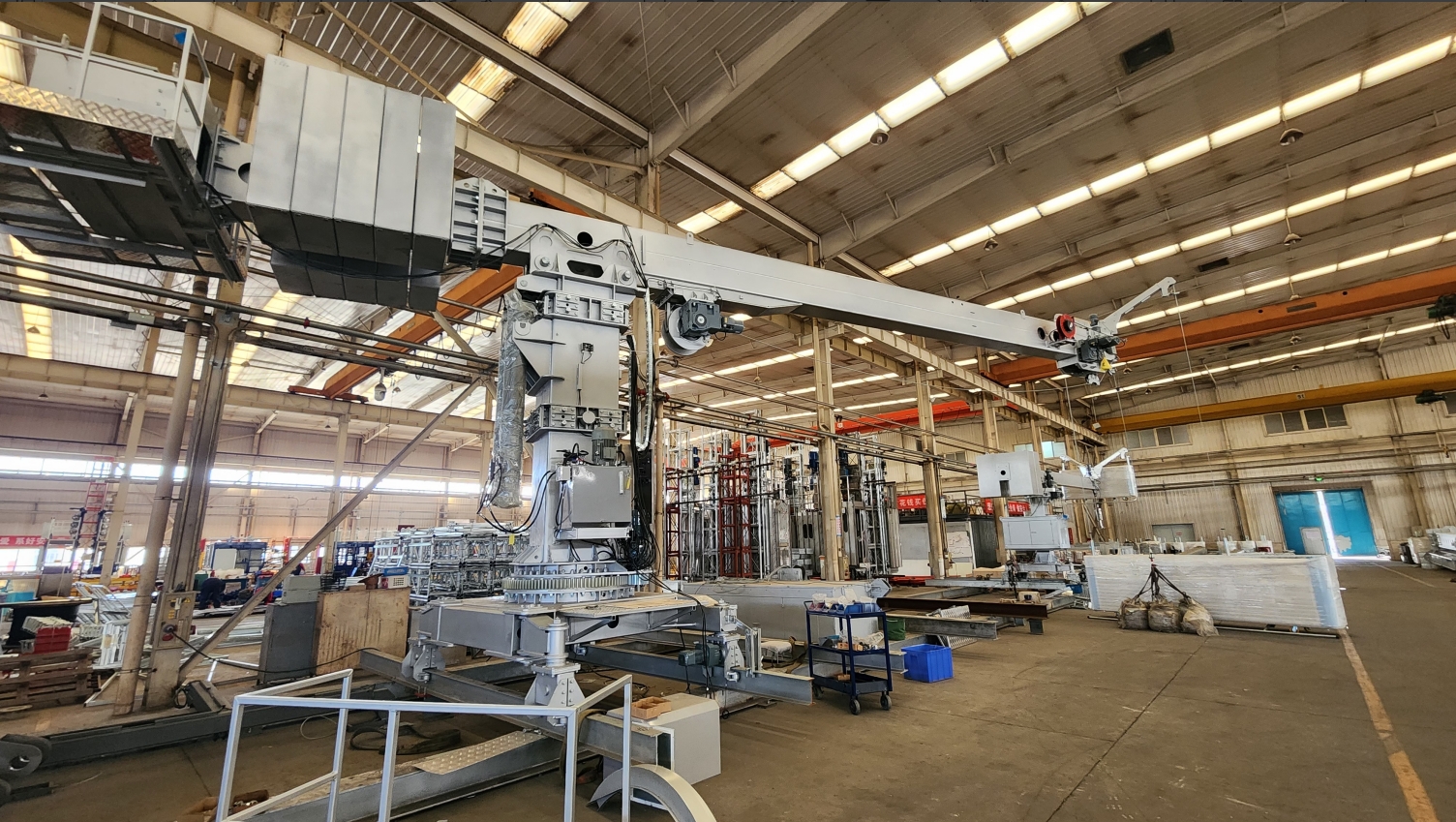 擦窗機(jī)設(shè)備設(shè)計(jì)過程中,設(shè)計(jì)團(tuán)隊(duì)克服擦窗機(jī)設(shè)備軌道間距偏小、玻璃吊鉤額定載荷要求偏大(額定荷載:999Kg)的難題,精心設(shè)計(jì)、詳細(xì)計(jì)算,圓滿完成設(shè)計(jì)任務(wù),得到了GMP設(shè)計(jì)院及業(yè)主的好評。目前擦窗機(jī)設(shè)備已經(jīng)生產(chǎn)完畢,完成整機(jī)調(diào)試及荷載測試,該項(xiàng)目現(xiàn)場安裝調(diào)試完成后,凱博擦窗匠心打造的擦窗機(jī)設(shè)備將矗立在雄安新區(qū)的天際線。