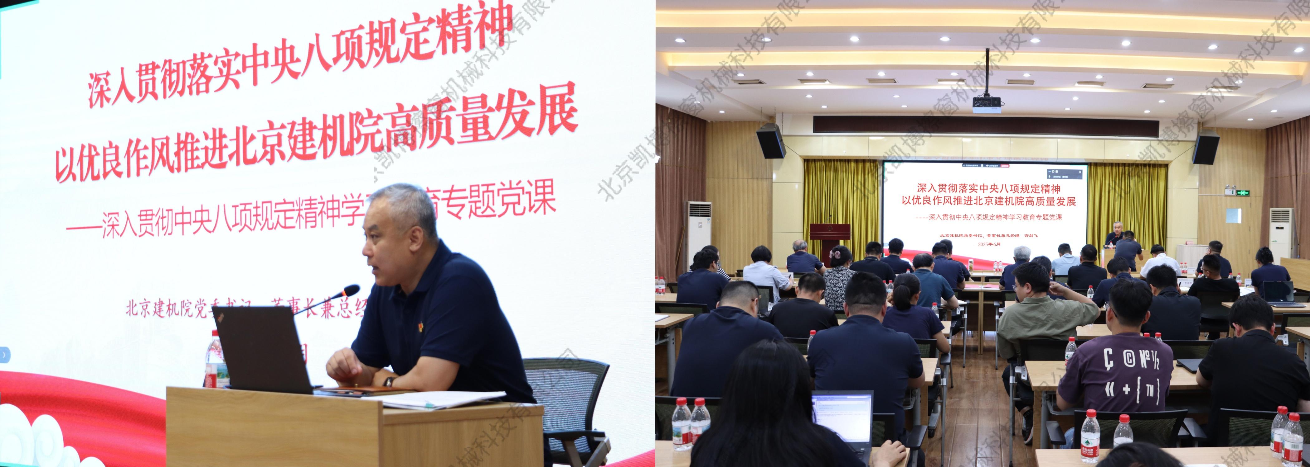 6月30日,北京建機(jī)院黨委書記、董事長兼總經(jīng)理宮劍飛以《深入貫徹落實(shí)中央八項(xiàng)規(guī)定精神,以優(yōu)良作風(fēng)推進(jìn)北京建機(jī)院高質(zhì)量發(fā)展》為主題講授專題黨課。黨課回顧黨的作風(fēng)建設(shè)的歷史脈絡(luò)與黨內(nèi)教育實(shí)踐寶貴經(jīng)驗(yàn),重點(diǎn)學(xué)習(xí)習(xí)近平總書記關(guān)于黨的作風(fēng)建設(shè)的重要論述,逐條解讀《中國建筑科學(xué)研究院有限公司關(guān)于嚴(yán)禁違規(guī)吃喝的十條規(guī)定》。宮劍飛指出,當(dāng)前北京建機(jī)院正處于創(chuàng)新突破關(guān)鍵時(shí)期,一要以上率下、示范帶動(dòng),領(lǐng)導(dǎo)干部要堅(jiān)持帶頭做、帶頭抓,堅(jiān)定不移地將作風(fēng)建設(shè)的各項(xiàng)要求落到實(shí)處;二要久久為功、建章立制,以梳理出的問題清單為靶向改進(jìn)工作,以制度建設(shè)固化作風(fēng)建設(shè)成果,推動(dòng)作風(fēng)建設(shè)常態(tài)化長效化;三要涵育廉潔文化,將好作風(fēng)轉(zhuǎn)化為生產(chǎn)力,以嚴(yán)明的紀(jì)律、務(wù)實(shí)的作風(fēng)、昂揚(yáng)的斗志投身工作。